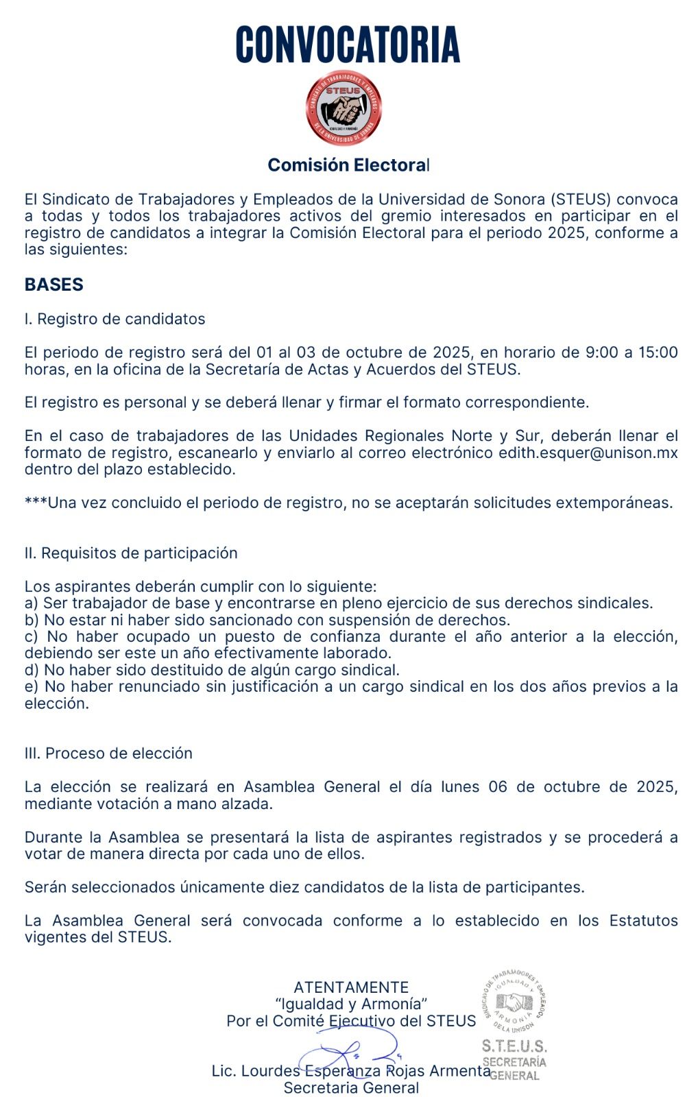 Convocatoria Comisión Electoral 2025.