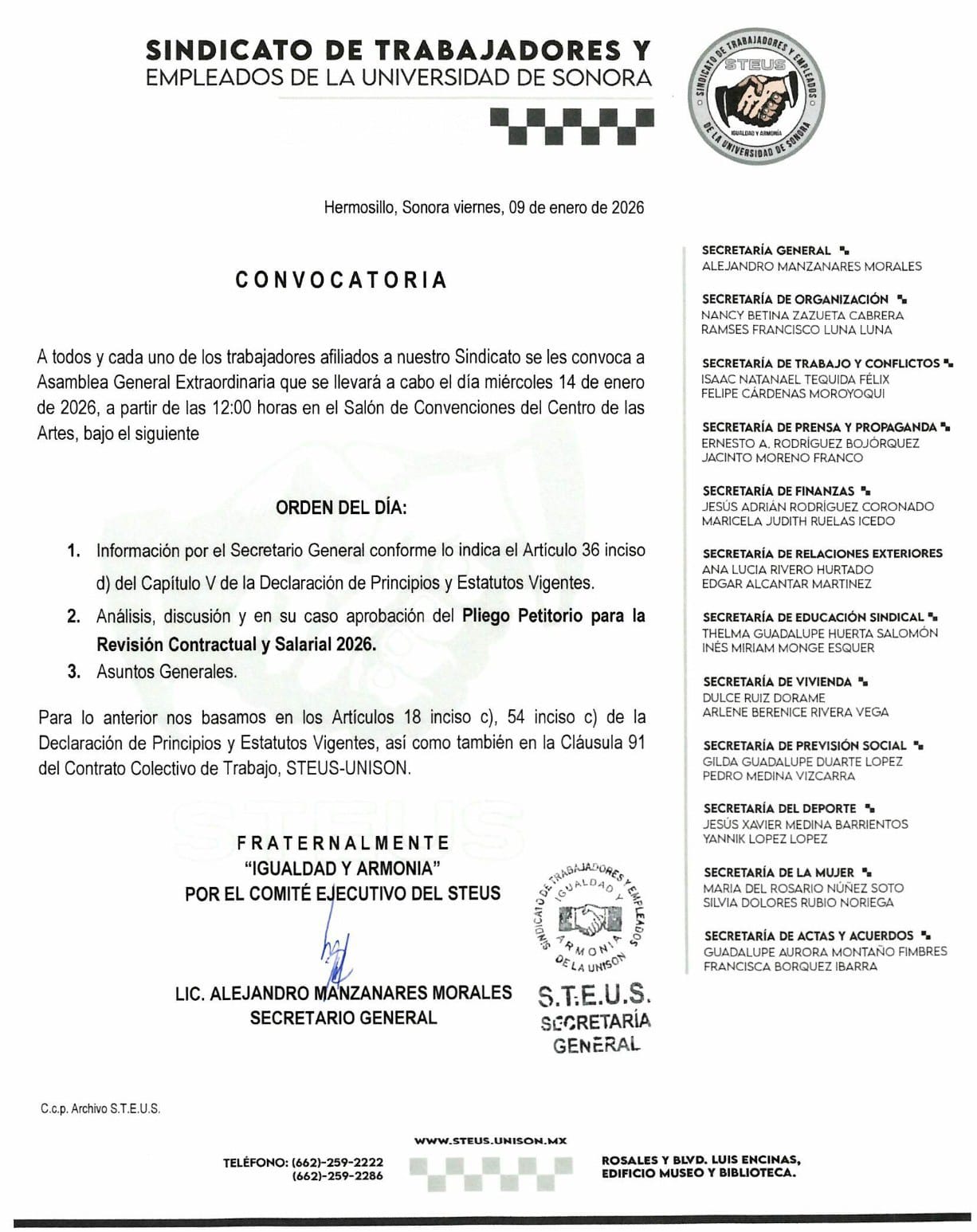 SINDICATO DE TRABAJADORES Y EMPLEADOS DE LA UNIVERSIDAD DE SONORA