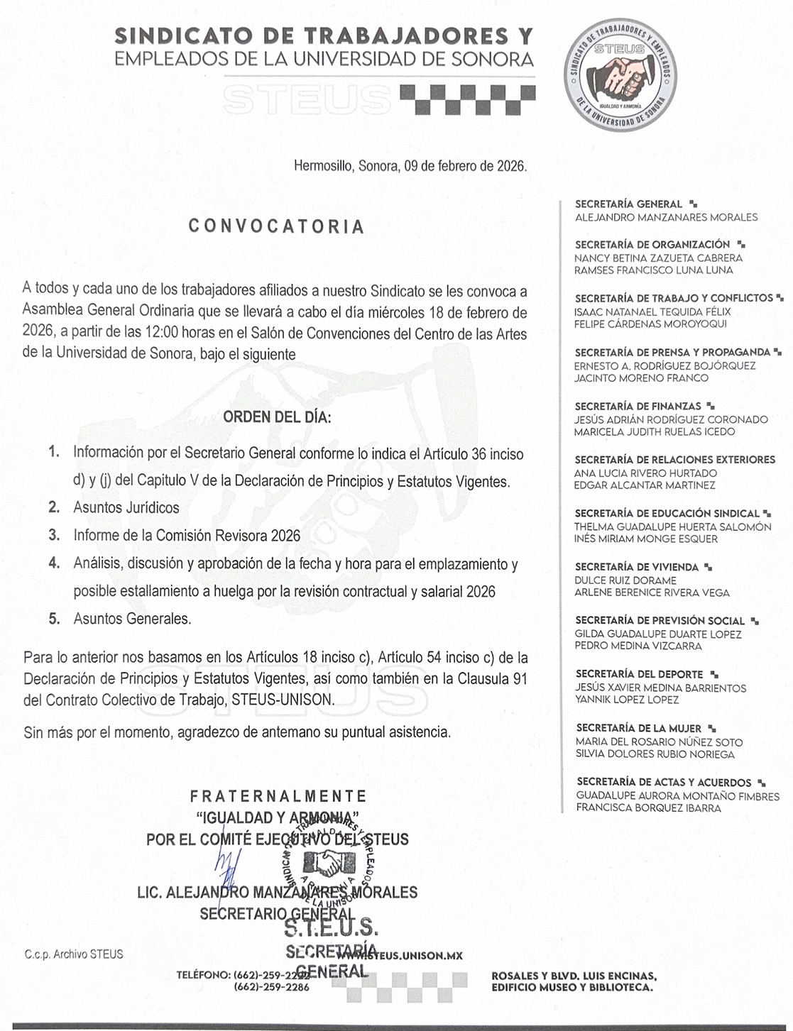 SINDICATO DE TRABAJADORES Y EMPLEADOS DE LA UNIVERSIDAD DE SONORA